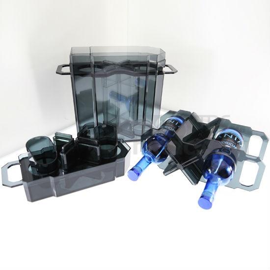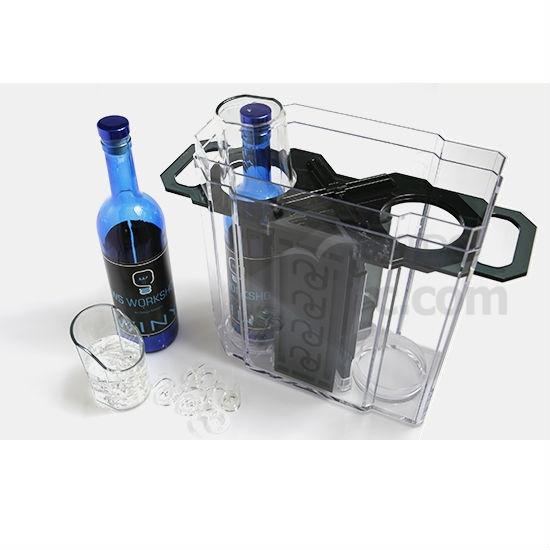 Winy comprises, inter alia, a packaging which also operates as an ice bucket, a serving tray and a wine rack. When the wine box is in a closed position, it can house 2 bottles of wine, 2 wine glasses and 2 ice cube trays. When the cover is turned upside down, it serves as a serving tray on which two wine glasses can be slotted into the 2 slots of wine bottle holder. There is a chamber between the wine bottle holder and the bottom of the serving tray which allows ice to be put to maintain to cool the wine. Users are having fun with Winy too. The 2 handles can be transformed into different forms of wine rack, Winy is providing a flexibility for users to match their home decorations and display different numbers of bottles.