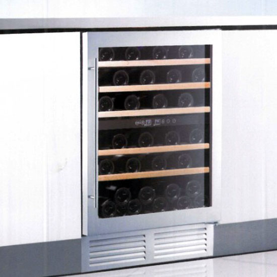 This is a spacious wine cooler that can hold 51 bottles at a time. It features a transparent door, allowing easy viewing the contents. The long handle makes it easy and convenient to use.