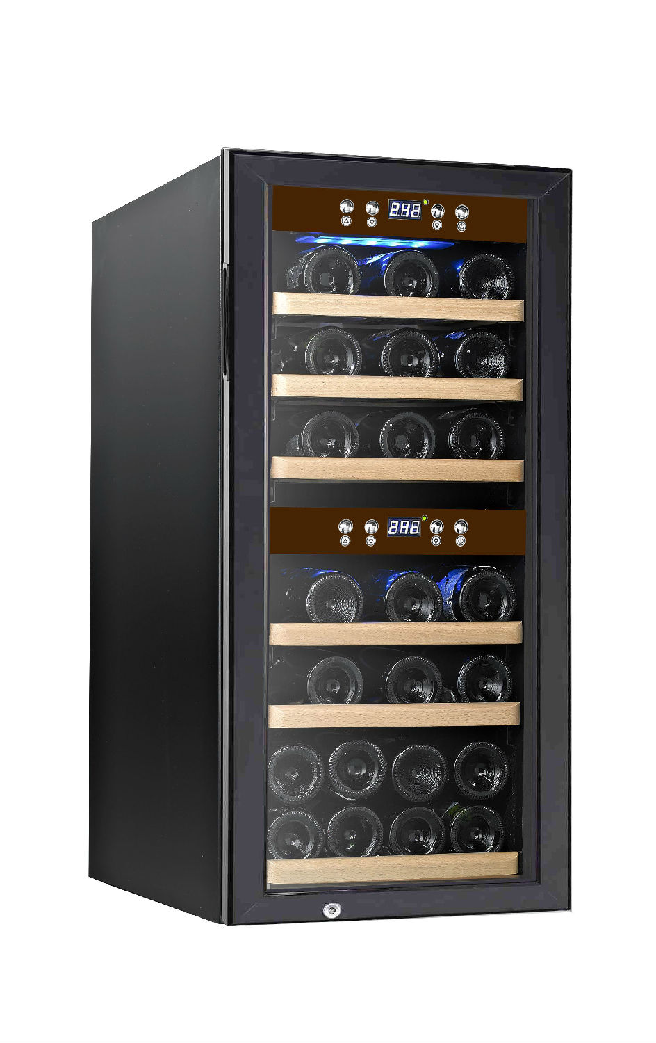 Two temperature zones ( can be set as low as 5 degree C) are designed so different kind of wines can be stored in the zones that fit with their characteristics.