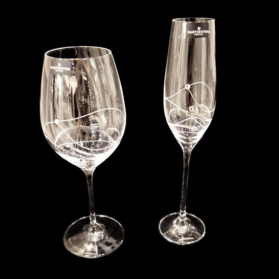 The presented wine glasses come in a classic transparent appearance. The bowls are ingeniously crafted with white curvy lines adorned with glittering crystals, airing elegant glitz. These delicate glasses are an exquisite addition to your bar accessories.