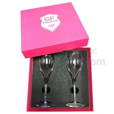 Remarks: this box is designed for wine glass packing. In order to secure glass, there is making a paper platform with die-cut the shape to fit with pair of glasses, placing 5mm foam at bottom on top respectively of inside outerbox to protect glasses in further.