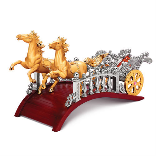 • Royal carriage on a bridge with galloping gold horses and gold wheels.