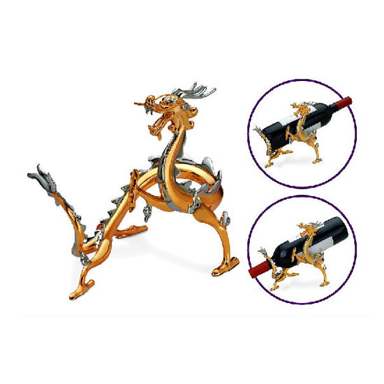This wine holder comes in a unique 2-toned soaring dragon design. The shiny gold- and nickel-plated feature offers an alluring appearance. This wine holder is an excellent choice for both personal and professional uses.