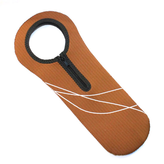 The picture displays a wine tote in a simple yet elegant style. It is fitted with a small zipper closure to protect the wine bottle from falling out. This wine tote is the perfect way to carry a bottle of wine to a party, outdoor concert, picnic or other important occasions.