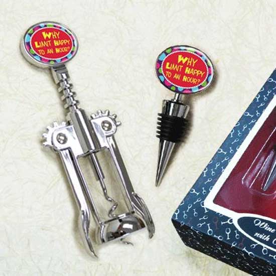 This wing corkscrew is decorated with a fancy enamel ornament. Also included in the gift set is a wine stopper in matching design. This playful, practical set delights wine lovers immensely.