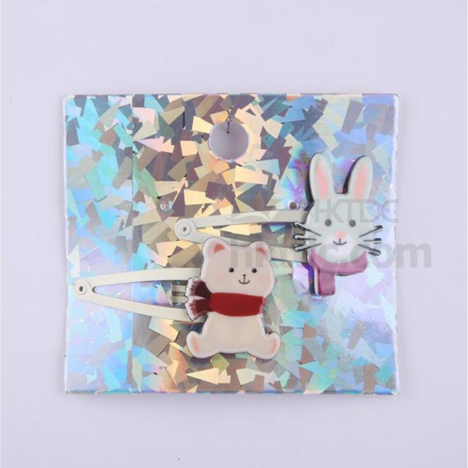 This is a pair of delicate hair clip highlighted by the enamel-painted bear and rabbit  to match the winter styles.