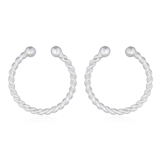 Wire Twisted With Sphere Ends Ear Cuff Earrings Sterling Silver