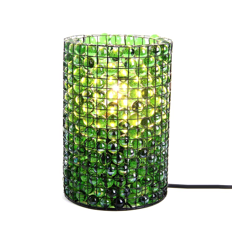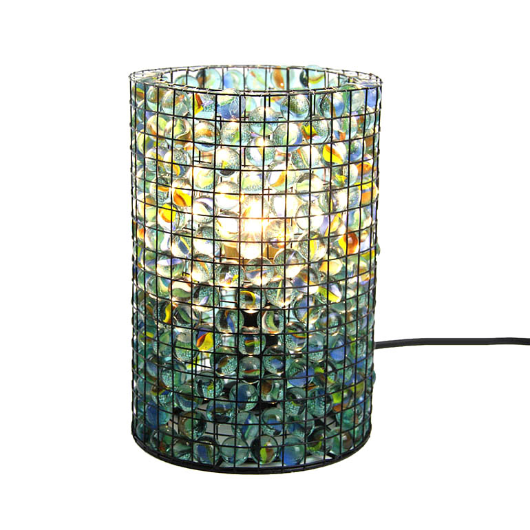 Feature: Wire cage with colorful glass ball cylinder table lamp