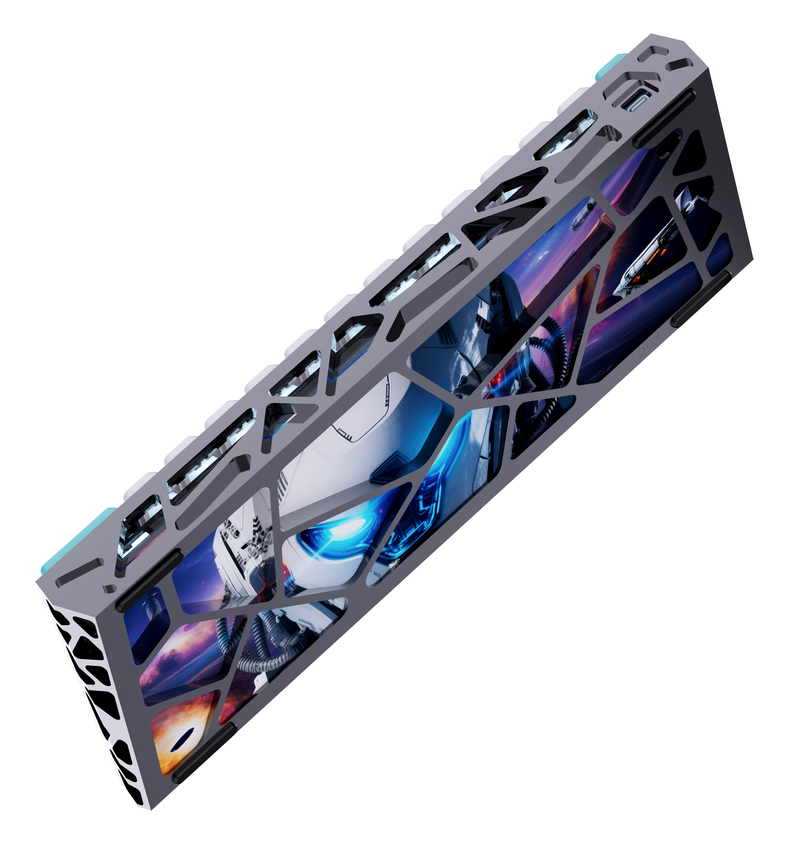 Keycaps: Jelly-style,white-and-blue keycaps with side engraving