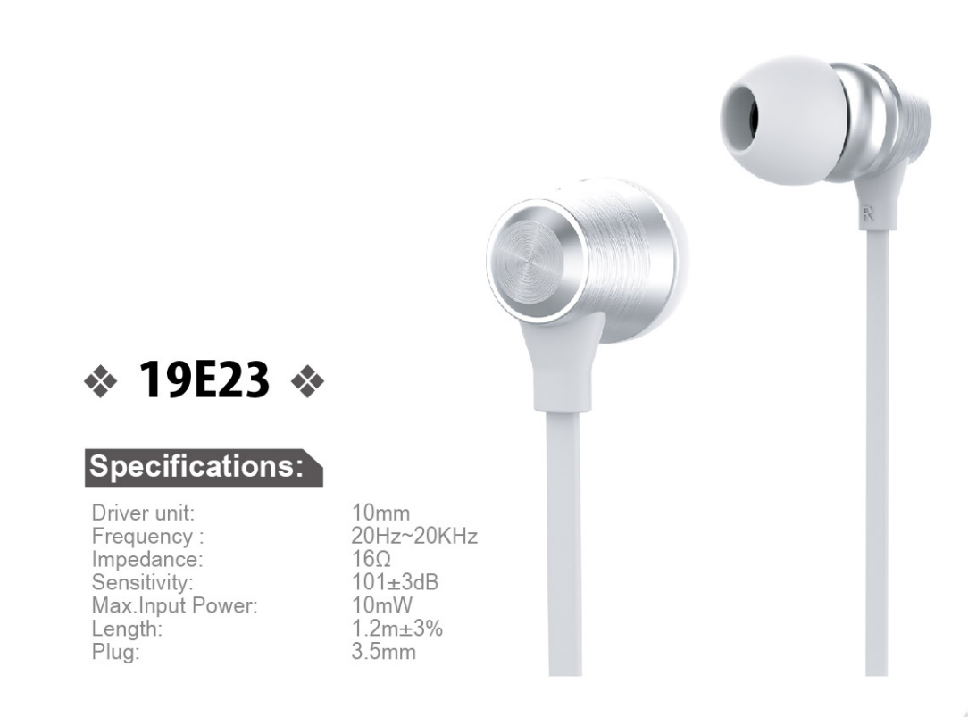 Wired In-ear Metal Earphone 19E23+MC54mic