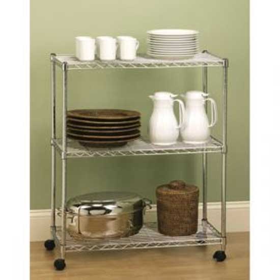 Featured is a household wired shelf with sturdy poles of reliable strength. The shelf features a dainty chrome-plated finish. The casters with locks allow easy movement. Store tableware items in a neat way with this wired shelf.