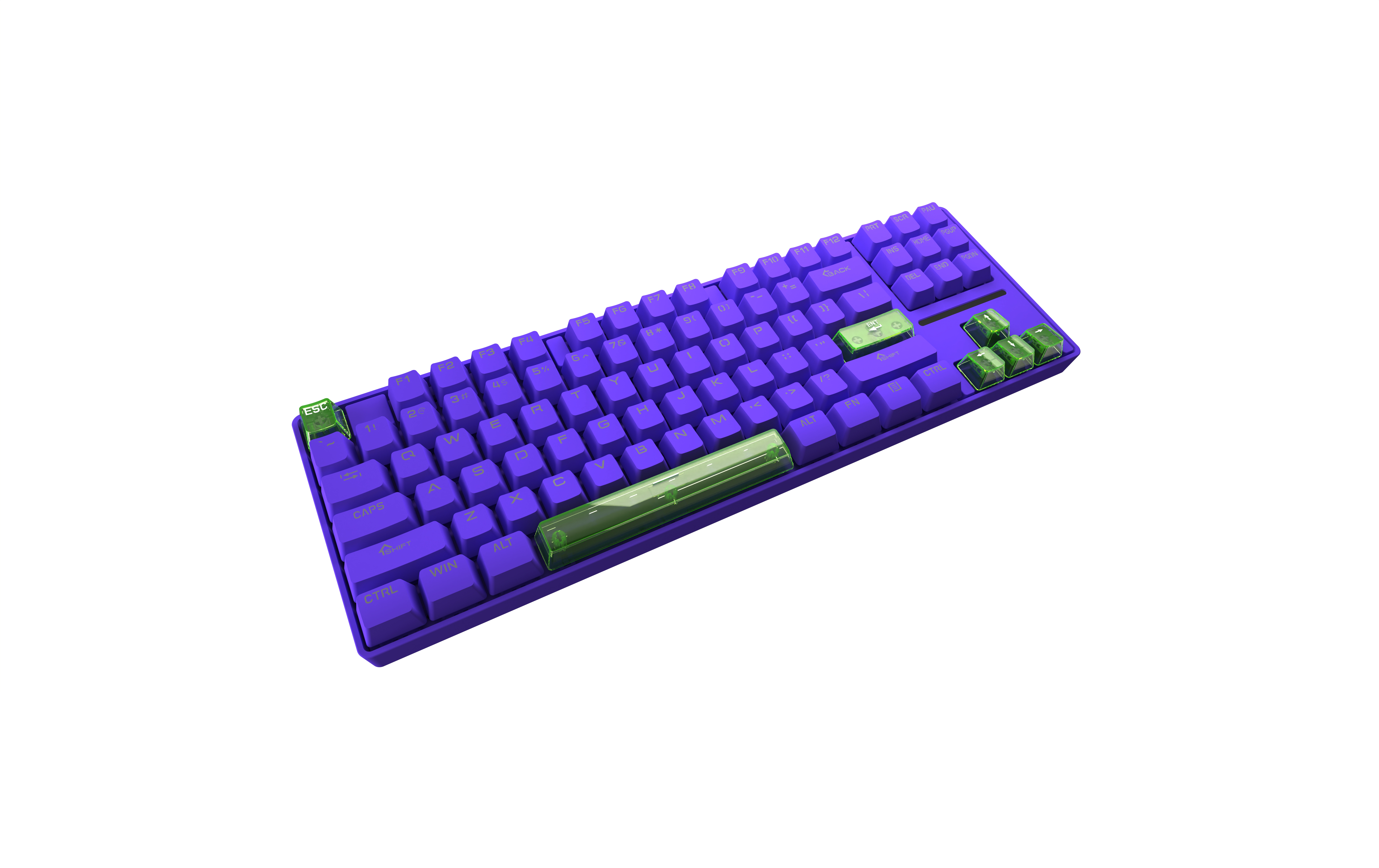 Keycaps: purple dural color Injection keycaps + 7 pcs transparent green color keycaps