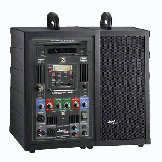 This portable wireless amplifier is a complete, all-in-one wireless PA system offering professional crystal-clear acoustic sound and wireless transmission. It comes with a remote controller and a shock-proof DVD, USB and SD card player. The voice-priority function allows all the microphones to automatically override any internal or external sound sources during speeches.