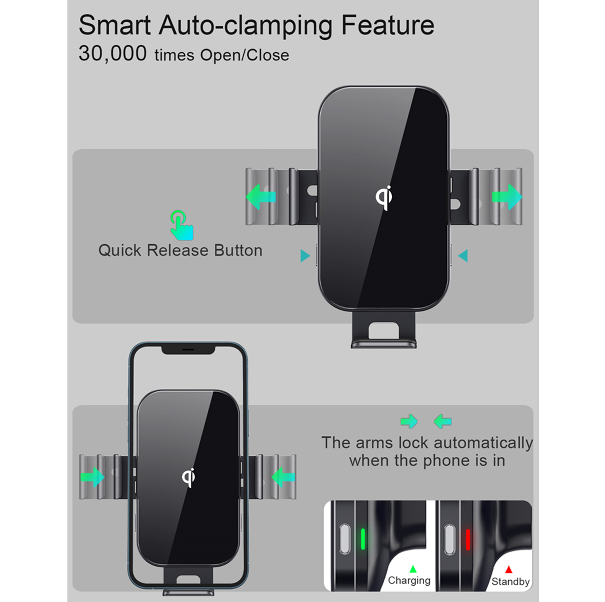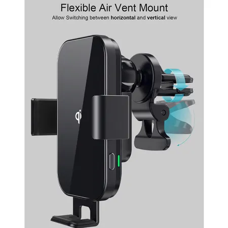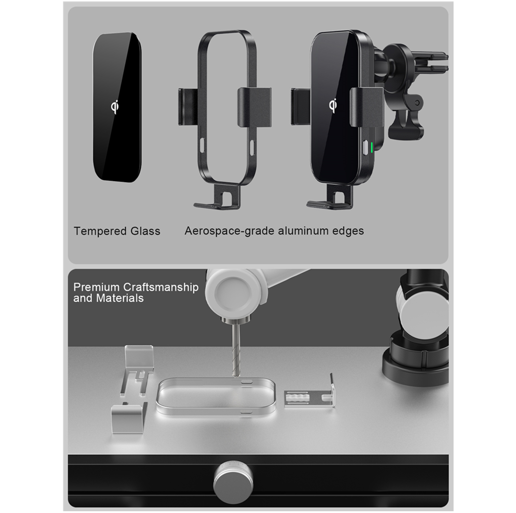 Wireless Car Charger Auto Open Close Qi Fast Charging Car Charger Phone Holder Mount, Auto-Clamping Alignment Windshield Dashboard Air Vent Cell Phone Holder
