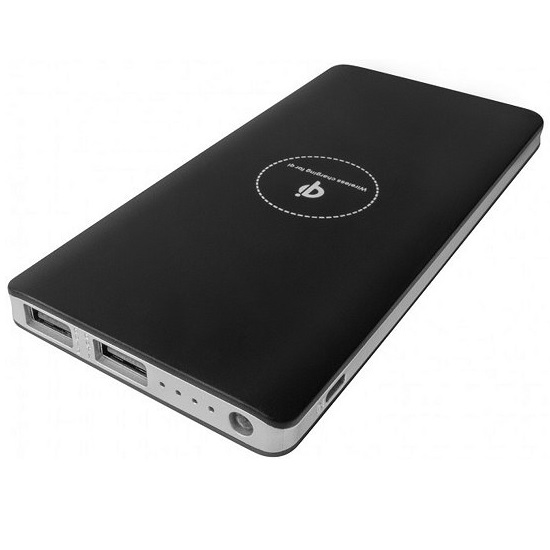 Featured here is an 2200mAh ABS powerbank with QI wireless charging function. It has a compact and durable rectangular housing and is equipped with a light, 4 power indicator lights, a micro USB input port and 2 USB output ports. This powerbank provides wireless charging for QI compatible devices and can be used to charge multiple devices at the same time.