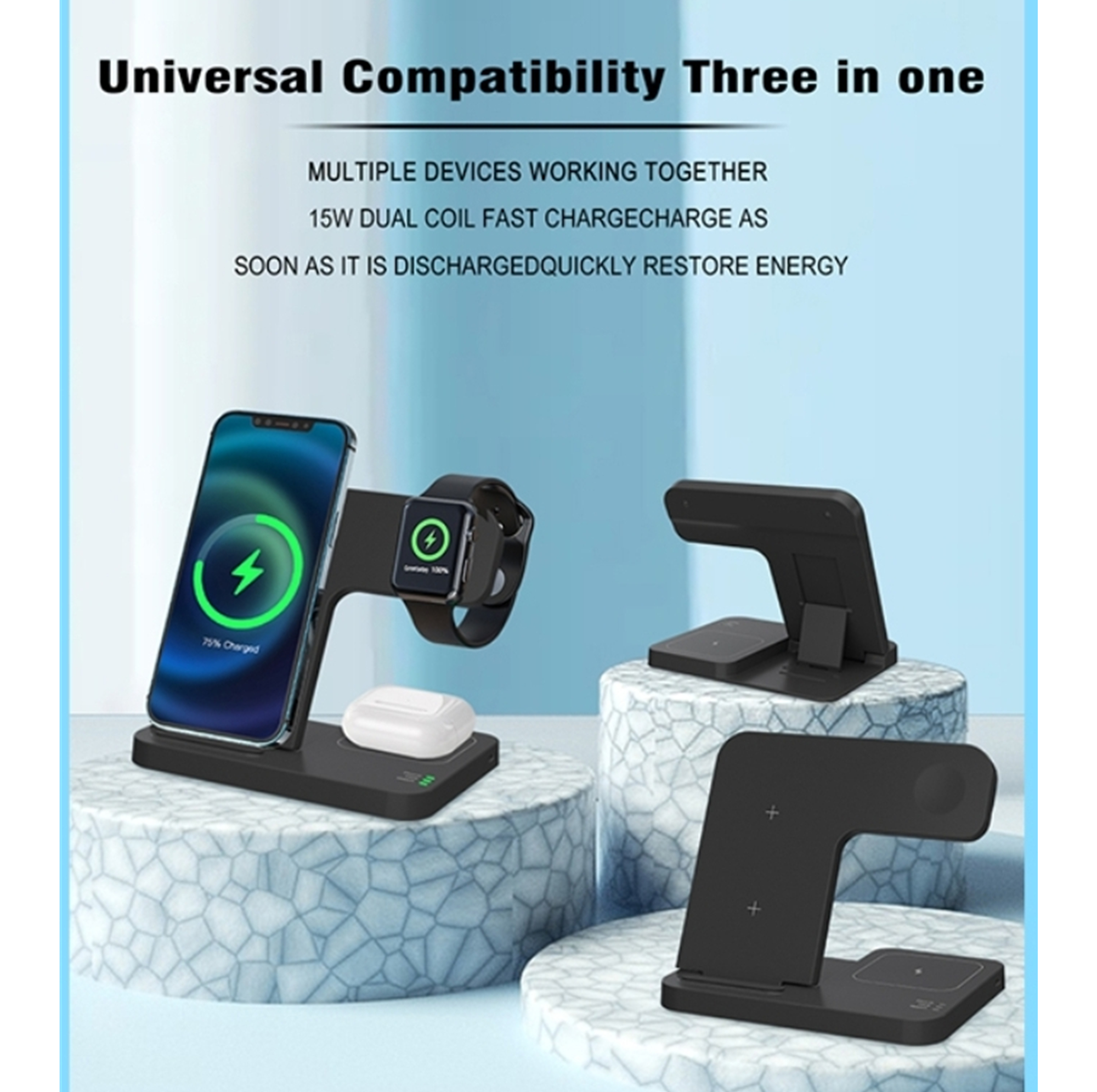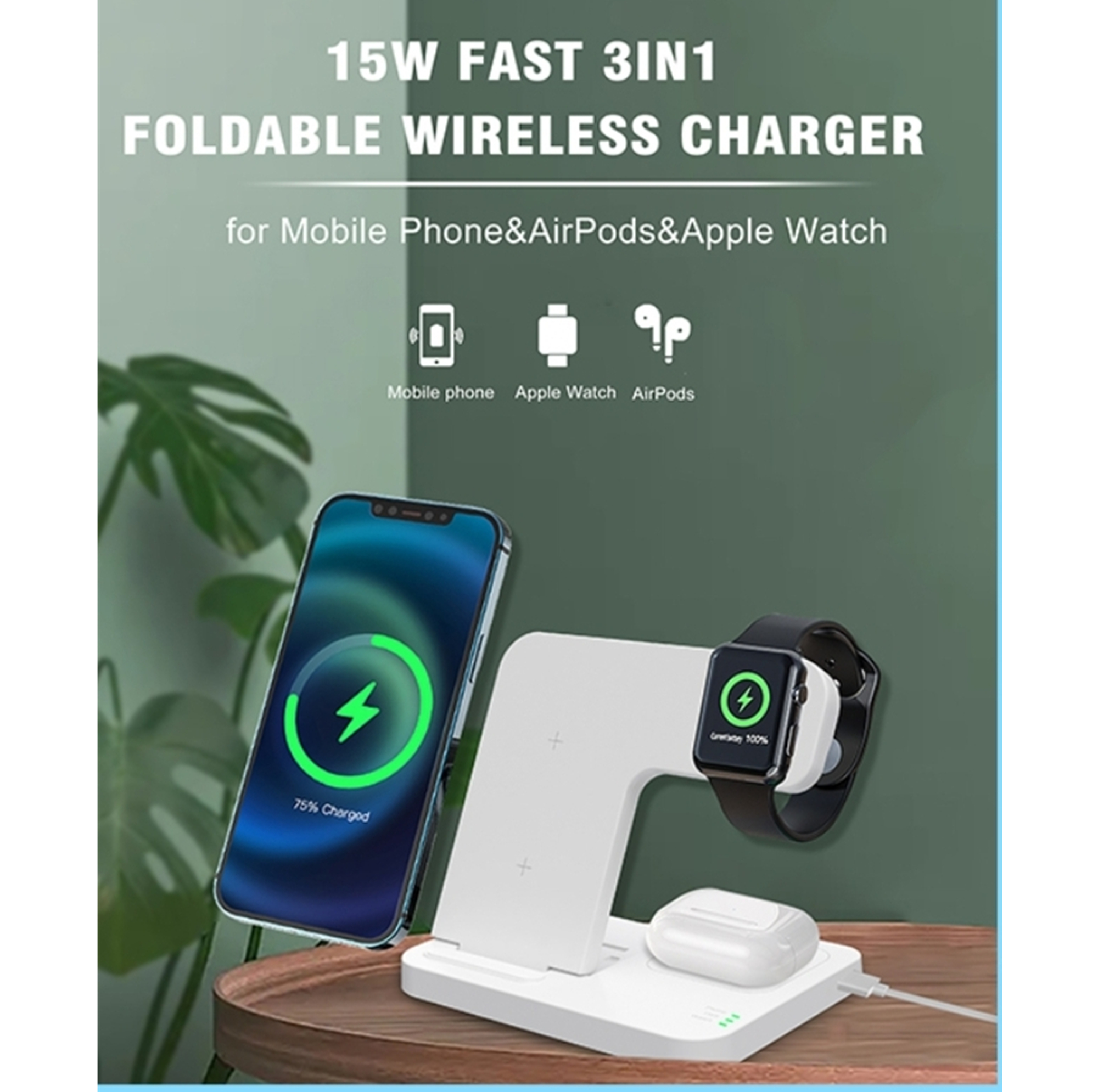 Wireless Charger Protect Your Mobile Phone 15W Max Wireless Charging Pad Stand Bundle, Compatible with iPhone, Watch, Earphones