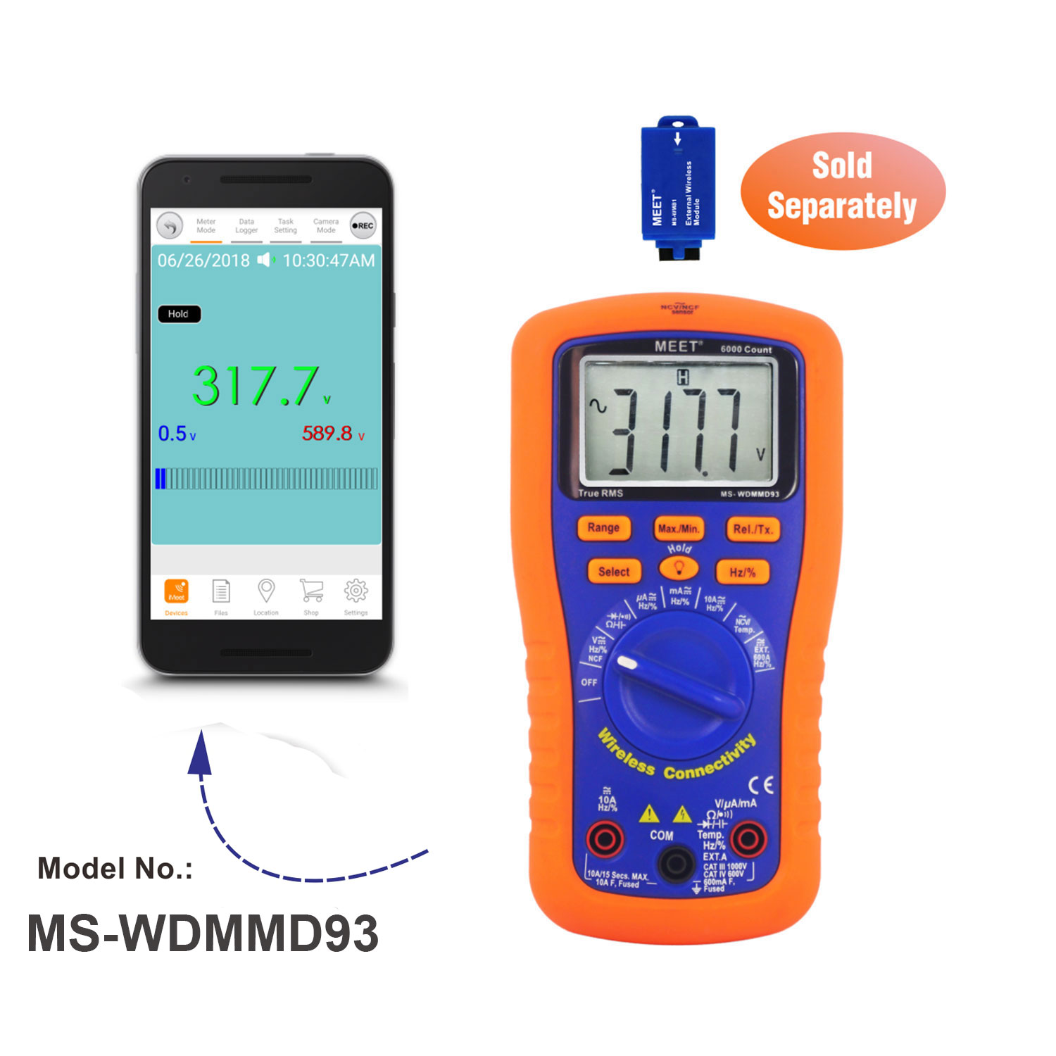 This is an external wireless connectivity Digital Multimeter Detector integrated with 6000 Count, True RMS, auto and manual measurement.