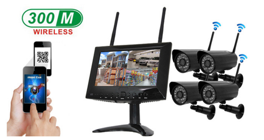 • Wireless LCD monitor with 4-CH SD card video recorder