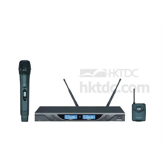 This wireless microphone system features a dual conversion with Digi-True Diversity (dual antennas with optimum reception selected). The highlighted receiver comes with LCD display for clear indication. Versatile and easy-to-use, it is ready to be used at any time for various applications.