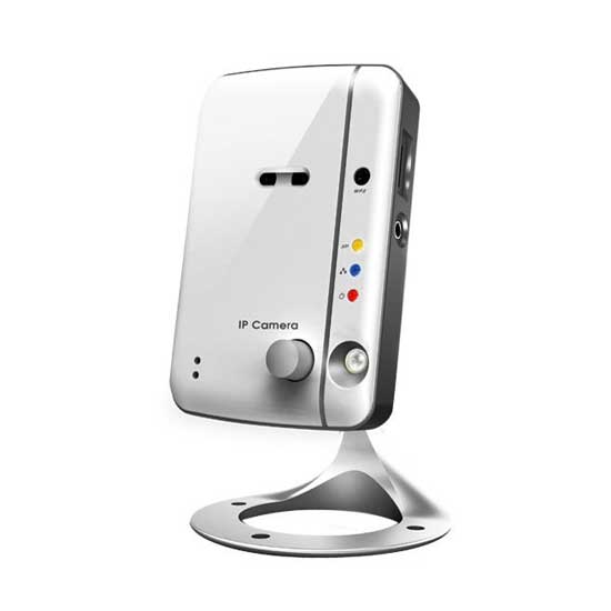 This is a wireless network camera with day and night viewing functions. It supports PIR body detection with an effective distance of 7 meters. The camera also boasts a stylish design with a durable structure in silver.