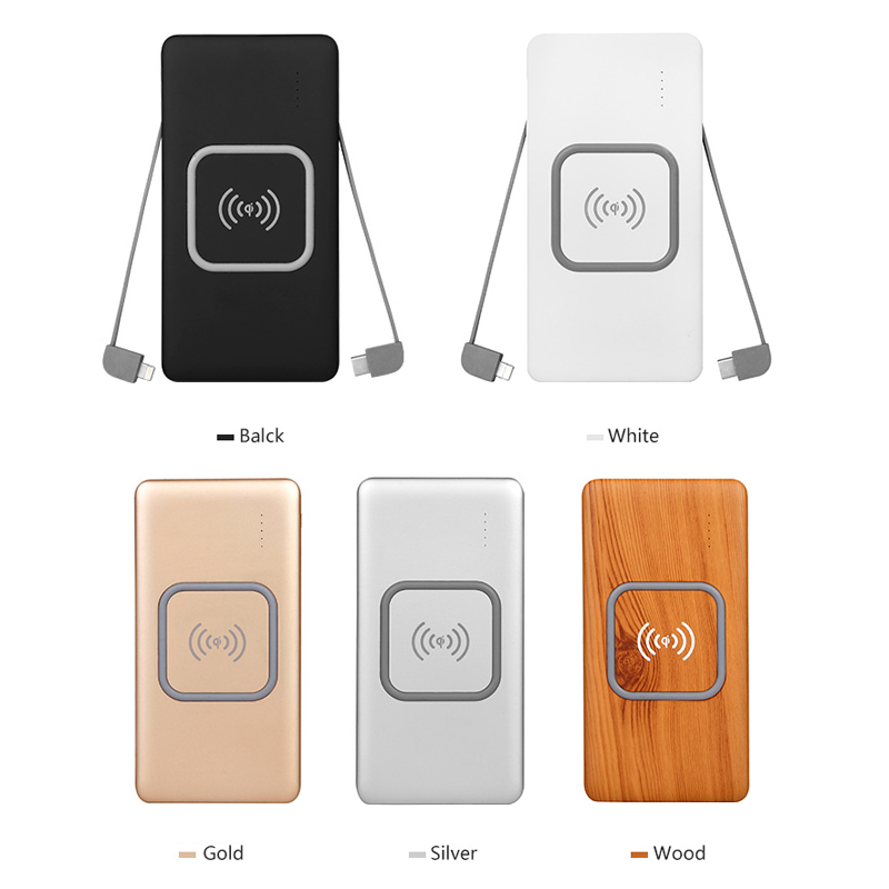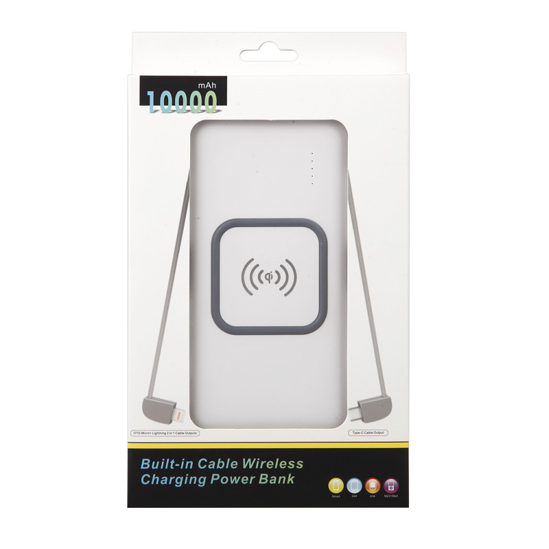 Wireless Portable Charger Power Bank 10000mAh Built-in Cable for iPhone and Samsung
