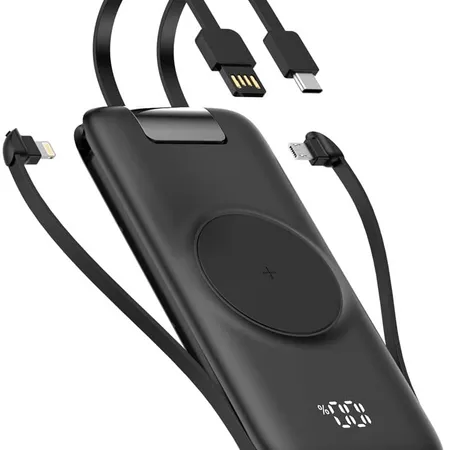 Wireless Portable Charger Fast Charging, Power Bank with Built in Cable, 10000mAh Ultra Slim Mobile Power Bank, Six Output & Dual Input External Battery Pack Compatible with iPhone, Android etc.