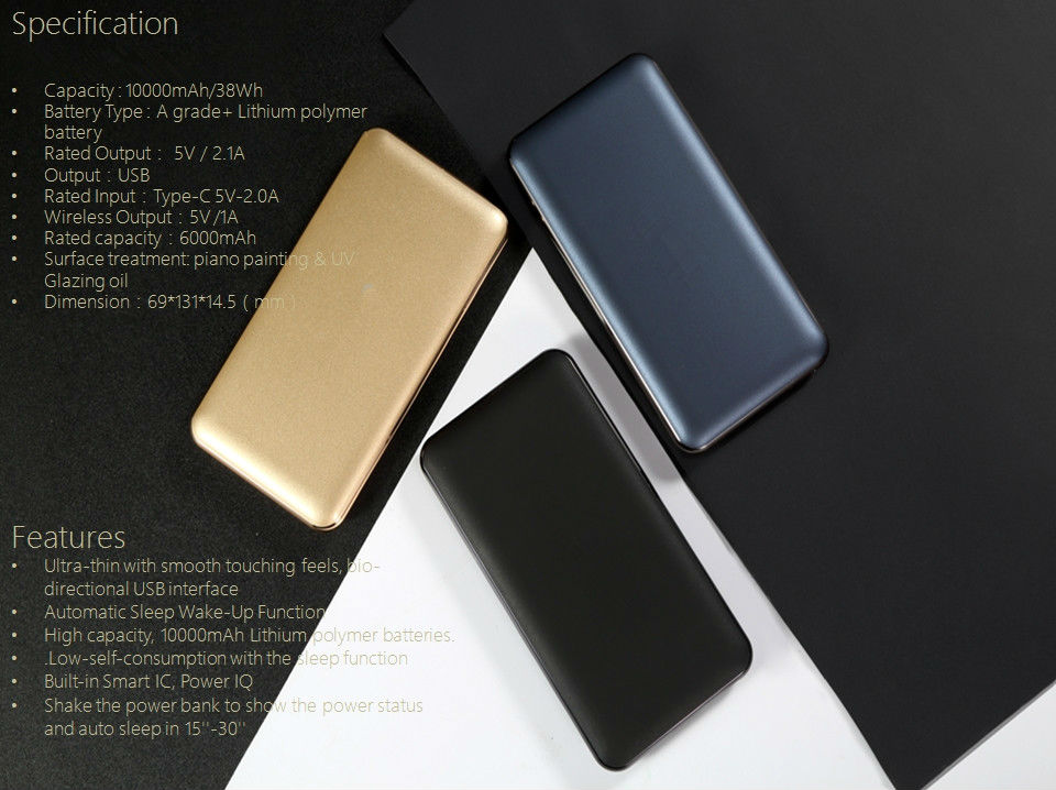 Charge your smartphone and other mobile devices wirelessly with this powerbank. It comes in ultra-thin design with a smooth surface and has a bi-directional USB interface. The powerbank flaunts a high capacity of 10000mAh and comes with automatic sleep/wake-up function to ensure low power consumption. It has indicators to show the remaining power and offers fast and convenient charging.