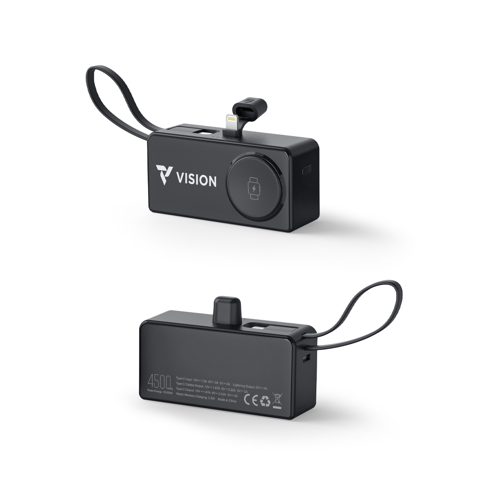 Portable Wireless Watch Charger 4500mAh Power Bank With Bulit-in Cable