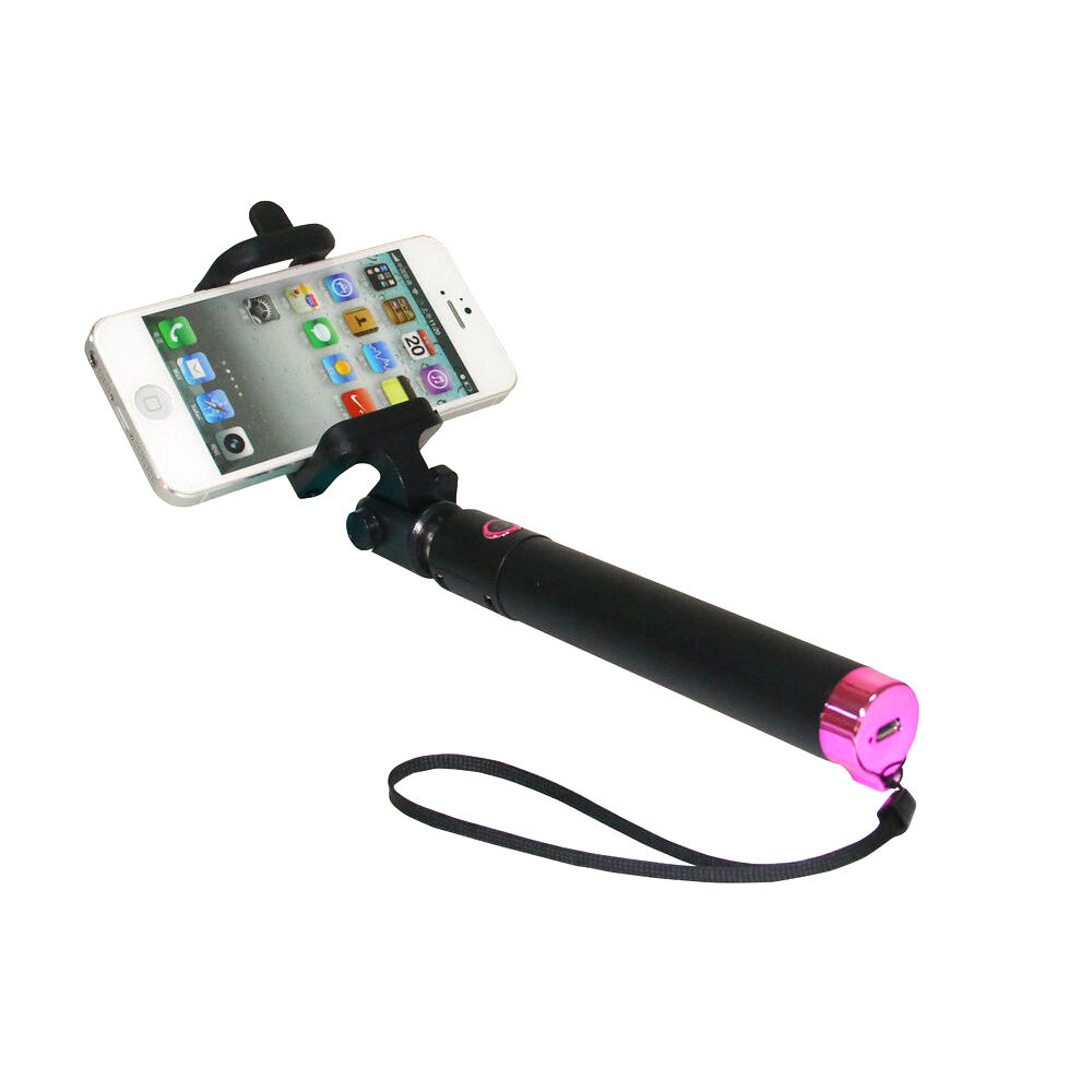 This wireless selfie stick features a combination of the easy-to-use handle button with the adjustable stick for easy, brilliant photography. The pivoting phone bracket holds your phone securely for the perfect shooting angle. This wireless selfie stick features compact and retractable design for maximum portability in your pocket or backpack.