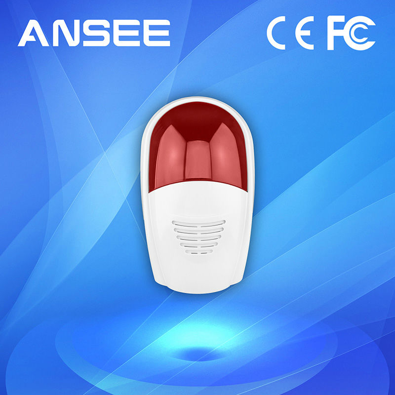 • PE-100 Wireless siren alarm connect with Ansee Alarm detectors wirelessly to realize linkage functions. It also can work independently. Its functions include anti-interference, anti-false alarm, anti-missing report, etc.