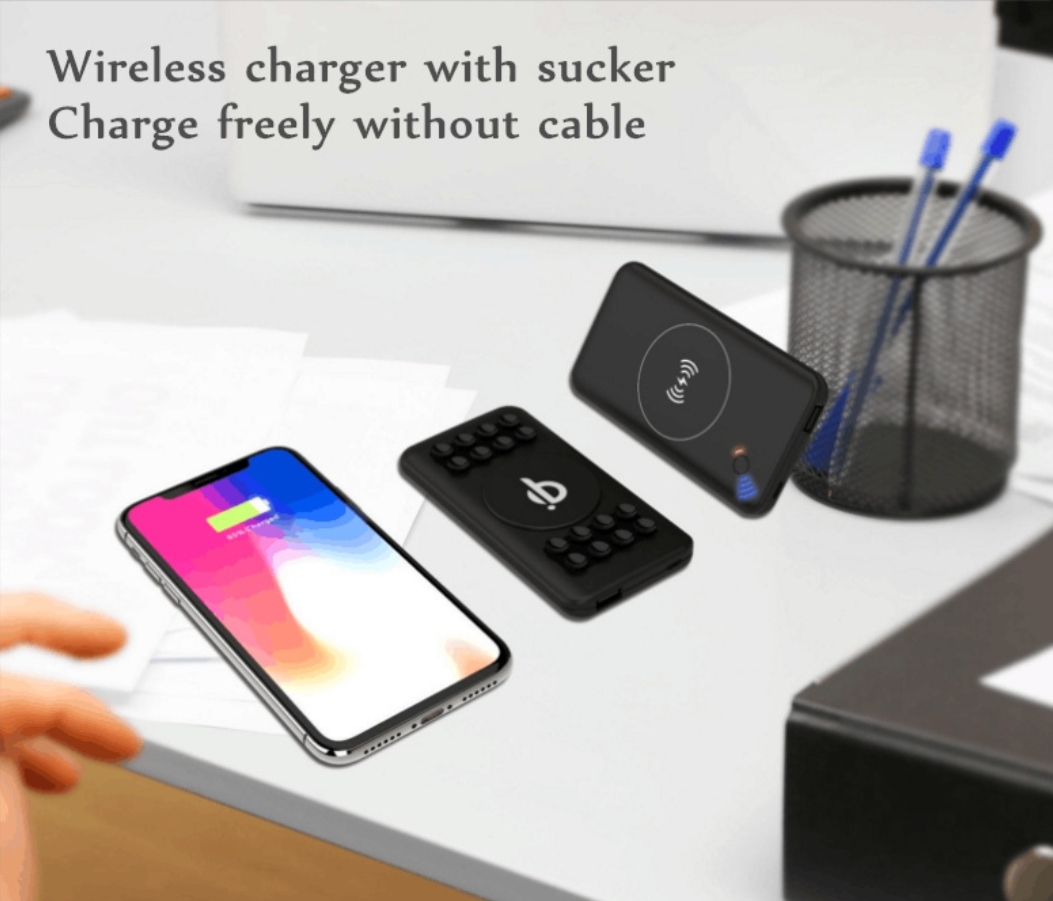 • Wireless charger with power bank with sucker.