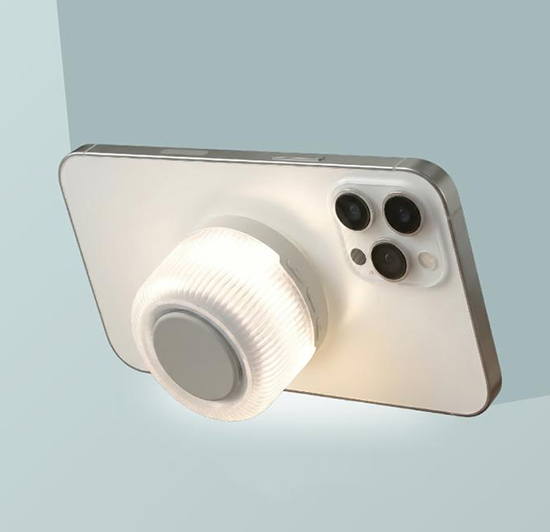 Accompanying the stand is a warm-glow wireless speaker that enhances mood and comfort. At night, Sora's speaker transforms into a night light, paired with white noise to help you drift into sweet dreams. During the day, it functions as a stylish lamp and speaker. Whether you're working at a café, unwinding in a cozy corner, or traveling, the Sora set becomes your companion. It simplifies your space while enriching your sensory environment, harmonizing light, sound, and peace with your lifestyle. Thoughtful, functional, and beautifully designed, Sora invites you to embrace calm wherever life takes you. The speaker supports wireless connectivity and USB-C charging, offering up to eight hours of battery life.