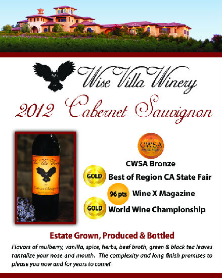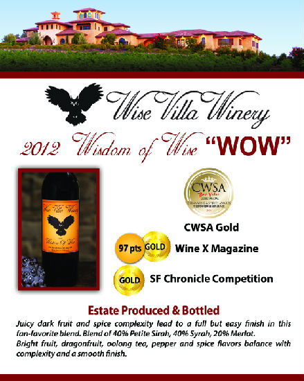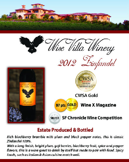 2012 Syrah CWSA Double Gold, Best of Class of Region (Best Syrah in Sierra Foothills) from California State Fair, Gold Orange County Fair