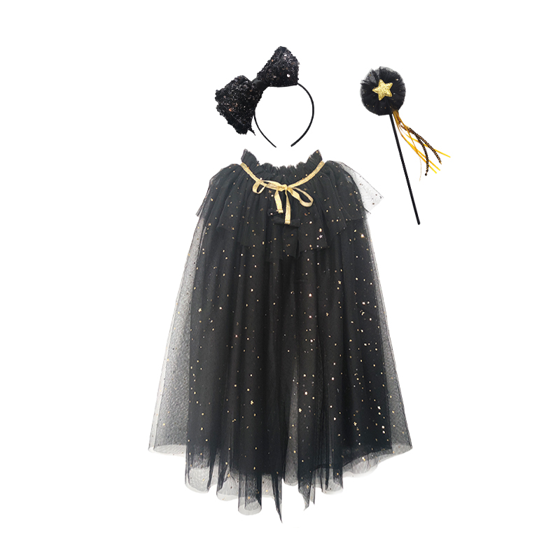 Dress up tulle cape kit including headband and magic wand