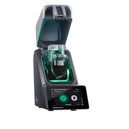 Witschi ProofMaster Pro, more compact, faster and accurate, pressure range from -0.7 to 10 bar. Parameterisable test programs with display of the leakage rate, adjustable limit and measurement time.