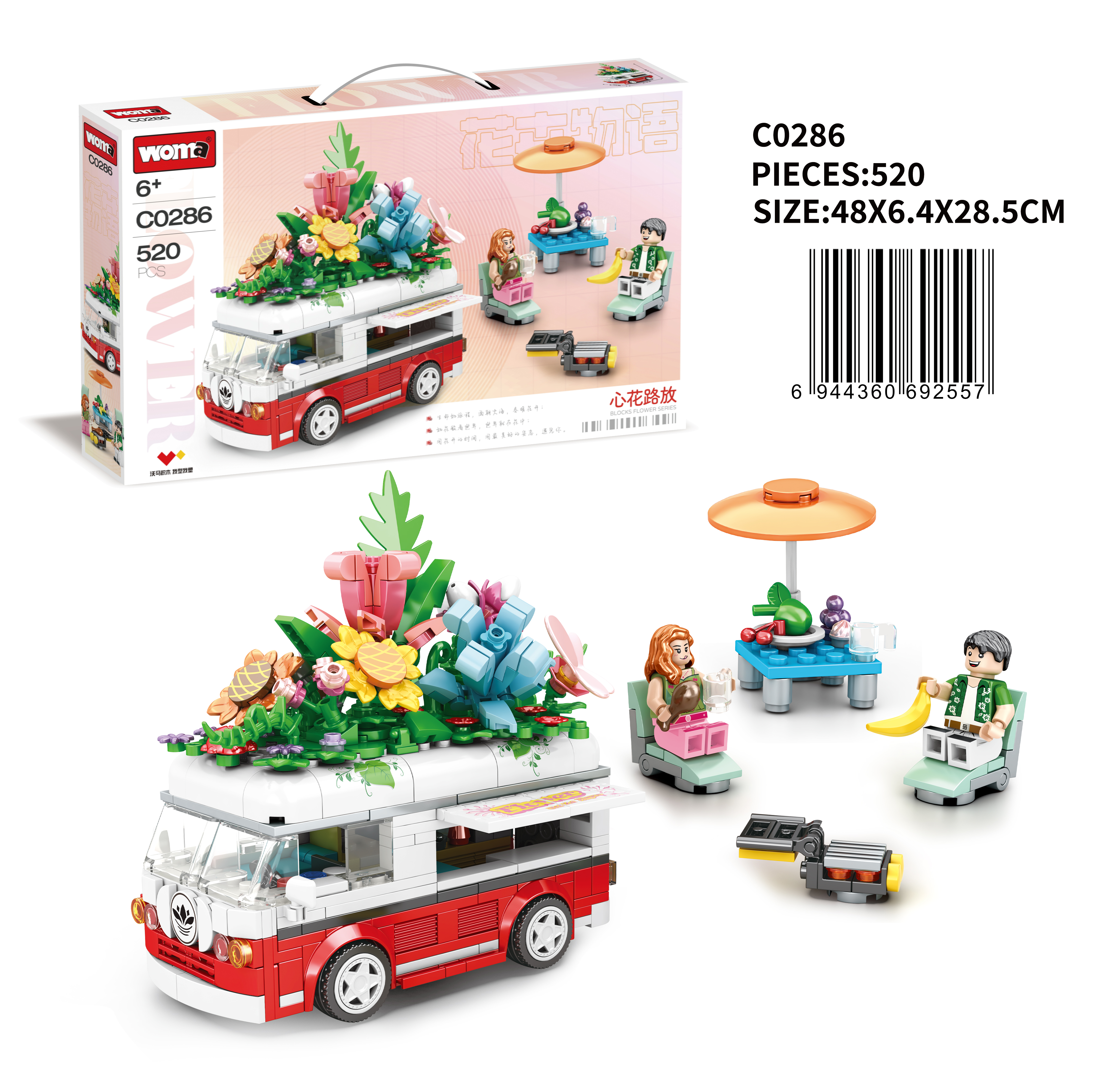 Woma Toys C0286 OEM ODM building block flowers bus brick car toy for kids girl with flower