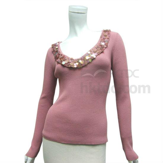 This ribbed top is sure to add an elegant flair to your work outfit. It has a V neckline detailed with glittery circle sequins for an exquisite touch. Pair this with a white crisp skirt for a refreshing look for spring season.