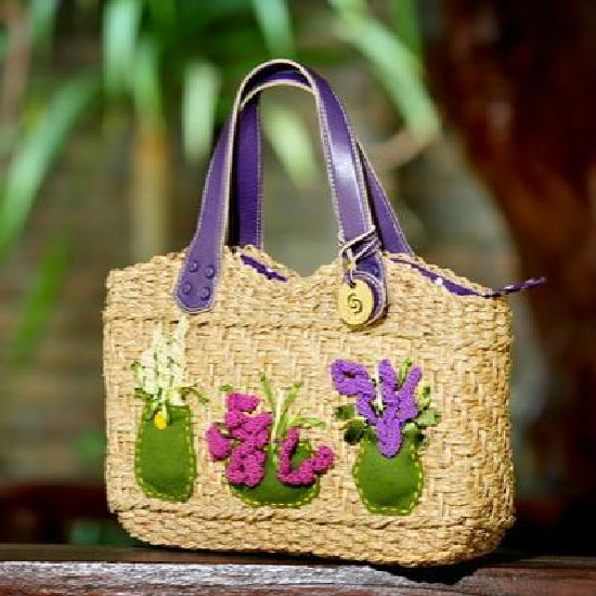 Get ready for summer with this compact women’s bag. This woven bag is adorned with plant embellishments for a refreshing vibe. The purple handles offer comfortable carrying. Handy and enthralling, this women’s bag makes a great accessory for any ladies in the new season.