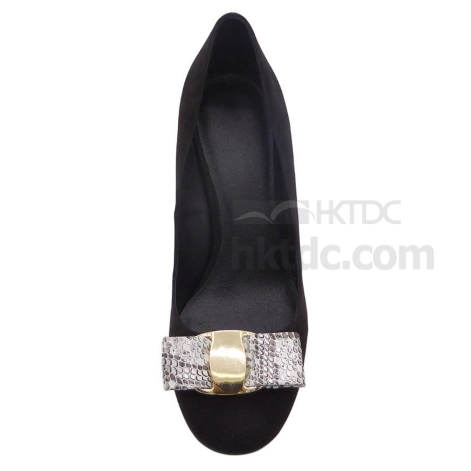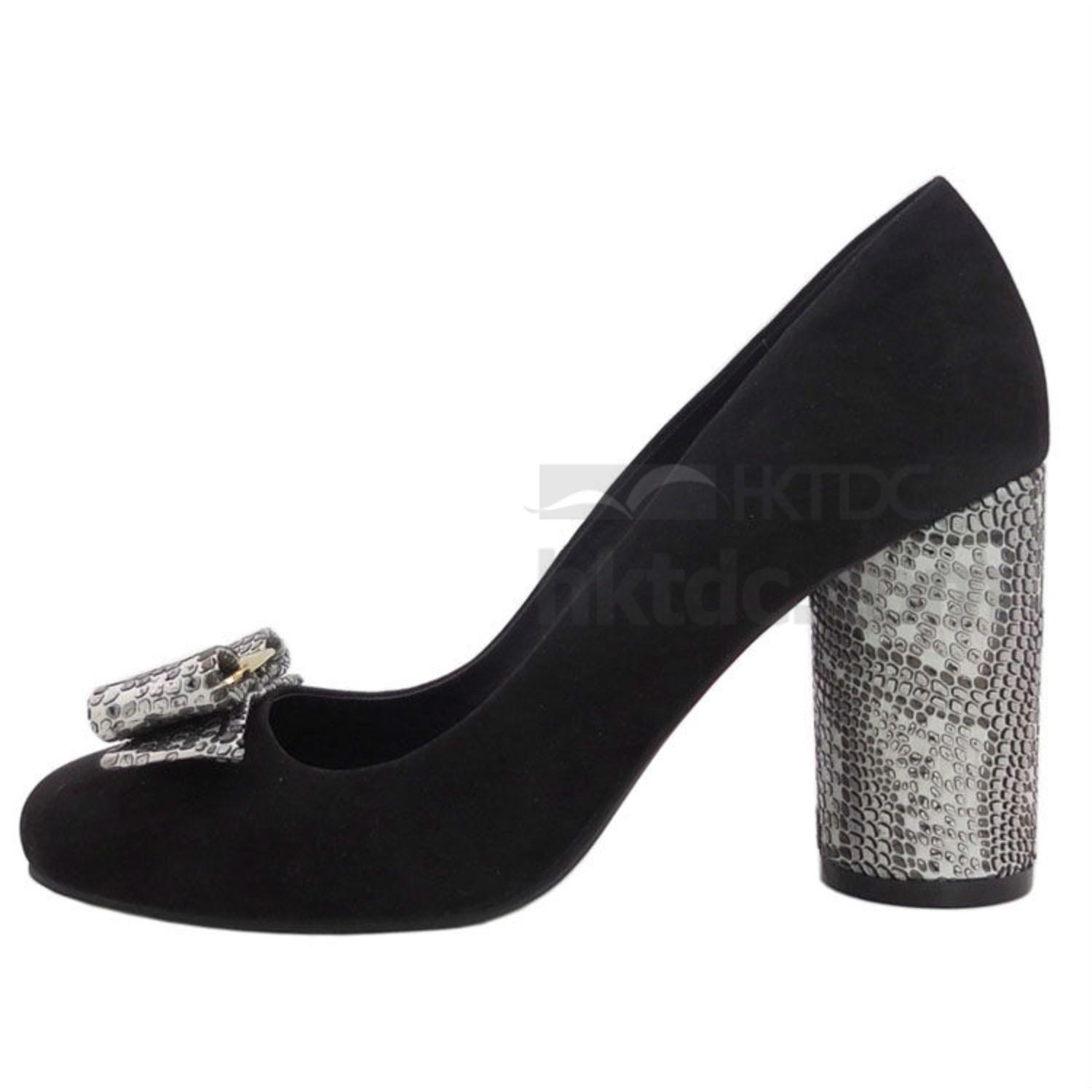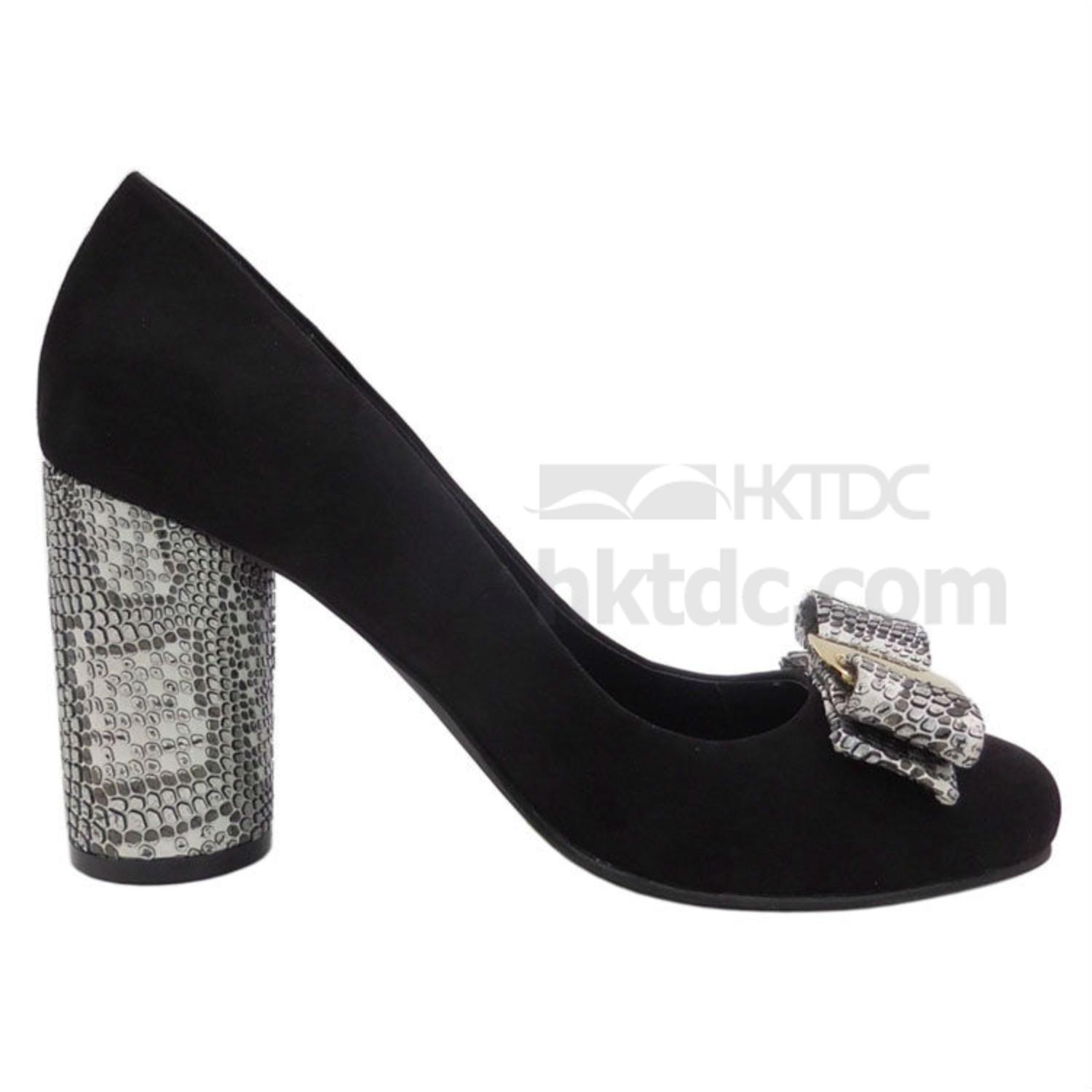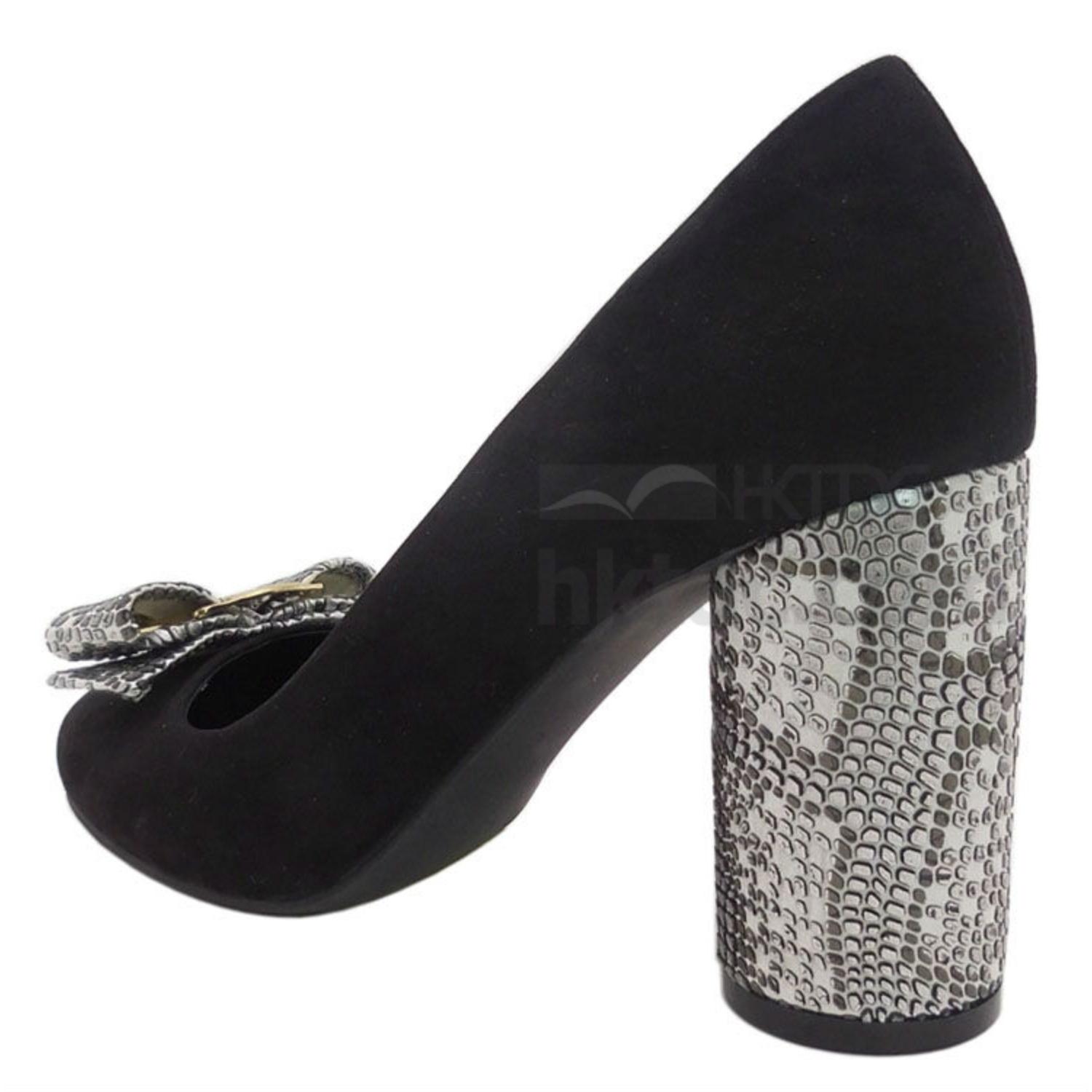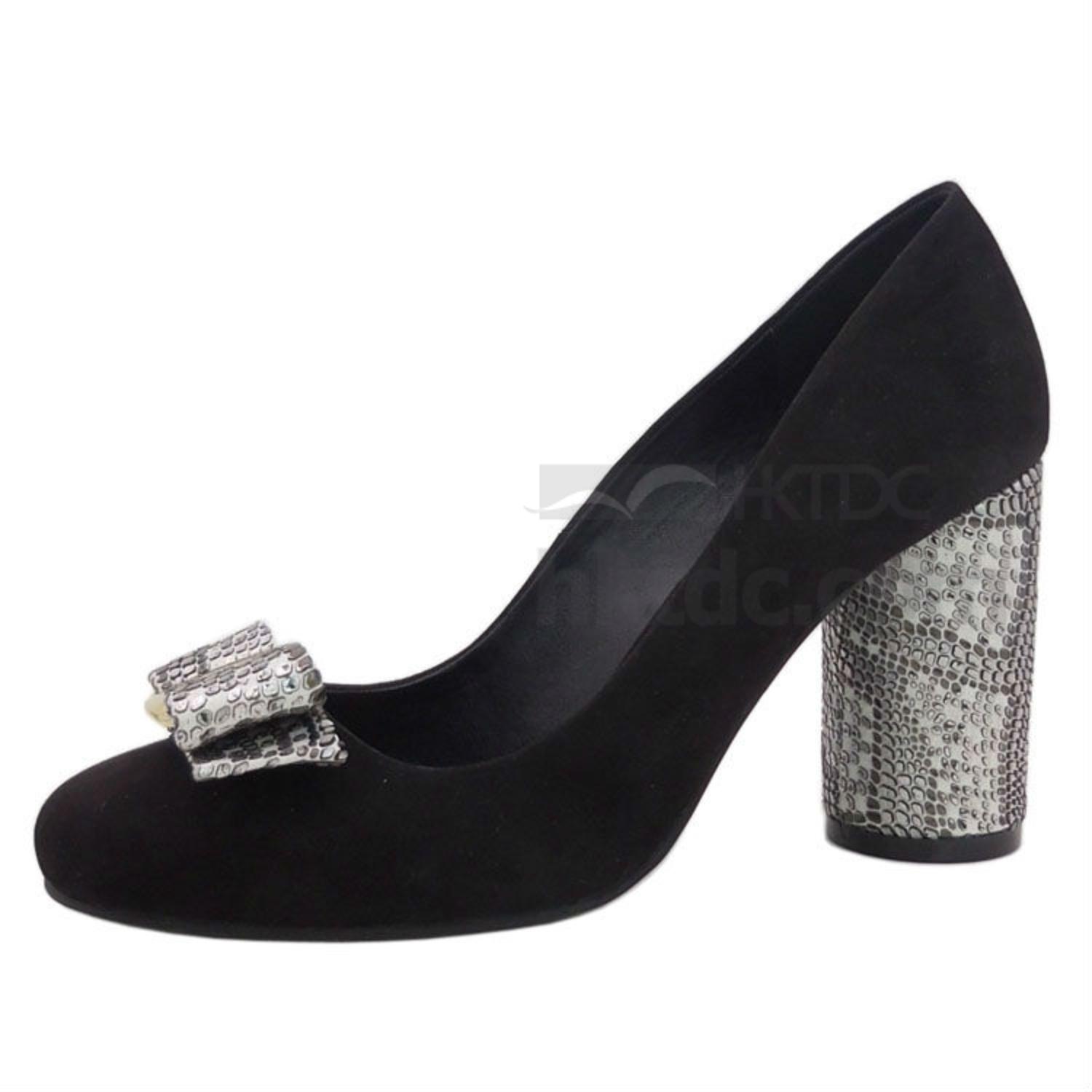 Women Black Micro Fiber Suede With Big Bow Pumps