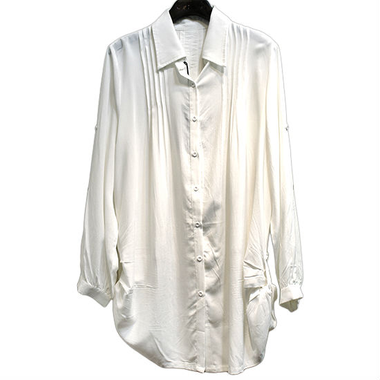 Relax fit shirt, a wardrobe staple, never gets outdated. Its pintuck detail on the shoulder panel adds an interesting touch to this quintessential piece. Roll-and-tab sleeves are attentively incorporated into the design for hot summer days. Pair this blouse with denim, pants or pencil skirt and you are ready to go.