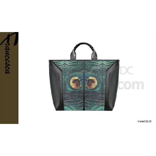 • Women fashion PU handbag crafted in a leather-look PU fabric with combination of solid PU and printing canvas.