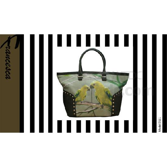 Women fashion PU handbag crafted in a leather-look PU fabric with combination of solid PU and printing PU.