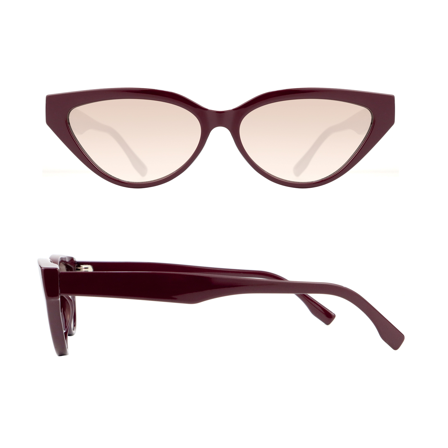 The eyeshape of the front frames we design in cat eye shape, but more slim, it will make the sunglasse looks more sharp but with elegance.