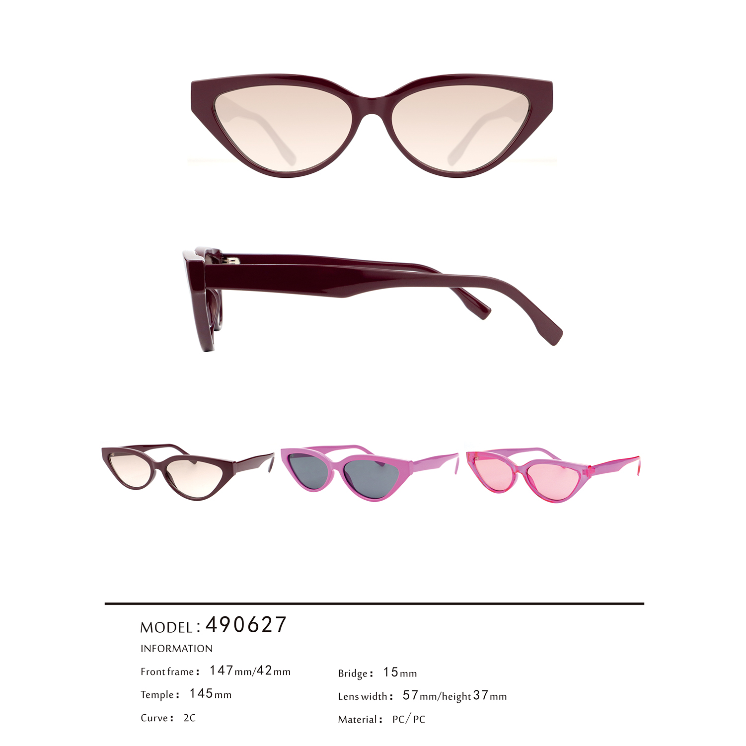 As to the material we used on this cateye sunglasses, the universal Polycarbonate is introduced to the frames & temples.