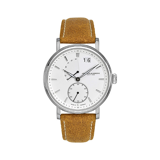 Accent your look with pretty flash of hues with this modish wristwatch. Crafted to a standard of perfection with German experts, the masterpiece showcases sheer elegance in its simplicity with a streamlined stainless-steel case alongside with a delightfully stitched band. Powered by Swiss Ronda quartz movement, the polished piece is loaded with a day-date wheel and an off-centered subdial across the clean and organized dial for accurate time telling.