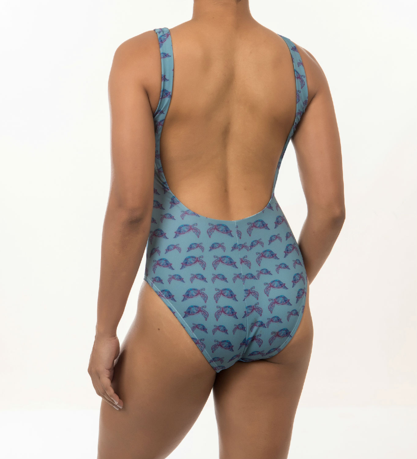 Women Swimwear - Hawksbill -Scoop Back Maillot in Stone and Marine