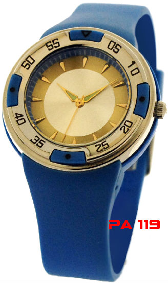 Show off your special taste with this unique watch. Highlighting a sharp gold-toned dial for a sumptuous style, the watch is strikingly paired with a blue band to exude a whimsical touch. The luxurious elegance of the dial is matched and contrasted with the casual and animated strap for an eye-catching fanciness. This watch makes the perfect item for the fashion forward ladies.
