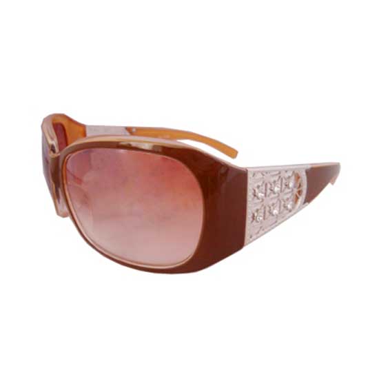 Coming with a wraparound design, this pair of sunglasses features large tortoise lenses. The wide temple is embellished with lattice patterns, where dazzling round stones are lodged in to shine with enchanting radiance. This pair of eyeglasses complements your eyewear collection in a brilliant way.