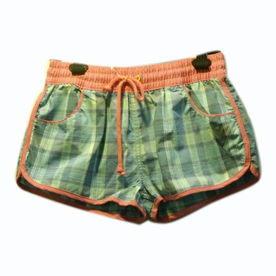 These beach boardshorts feature a green checked pattern and lively orange trims for a young and fun style. The shorts are made of microfiber for great comfort and breathability. The stylish shorts look great with swimsuits.