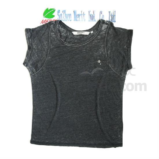 Minimalist and easy to mix and match, this burnt-out T-shirt comes in a plain greyish tone with a matching pocket detail on the right. The short sleeve design makes it perfect to be worn during summer. Constructed of combed cotton and polyester CVC, it promises a soft and nice texture which is healthy for the skin.